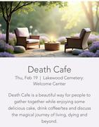Death cafe is an opportunity for like minded people to get together and talk all things death. There is no agenda except as arises among those in attendance. You are ...