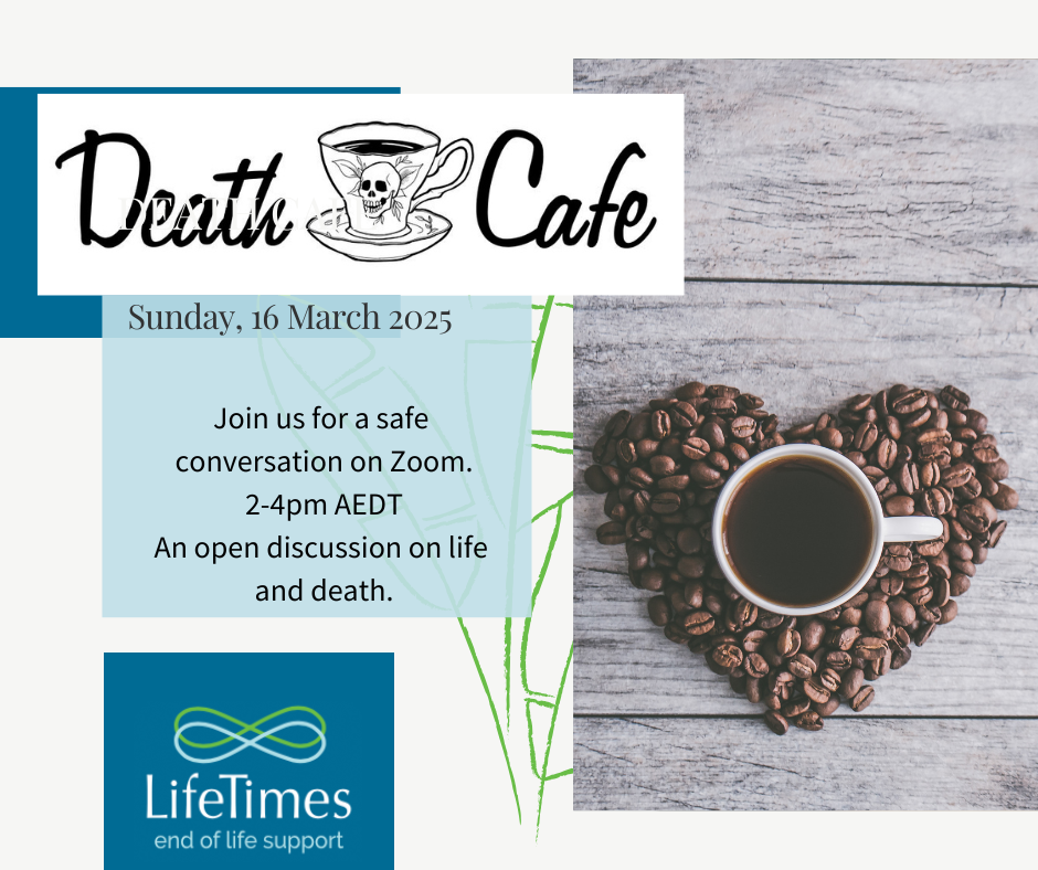 Ruth hosts these online Death Cafes herself, through her doula work as LifeTimes end of life support.