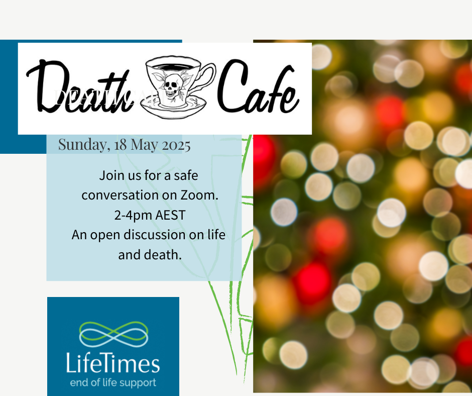 Ruth hosts these online Death Cafes herself, through her doula work as LifeTimes end of life support.