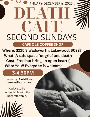 Like all Death Cafes, we follow TWO basic rules..... 1. No agenda and 2. No exchange of money. These distinct boundaries create a safe and warm space for so much lively conversation! We always laugh about how people who have never come to a death cafe think it sounds SO hideous when in all reality we laugh, and cry and CONNECT. Which for many of us there, is the point of this beautiful space. Please feel free to join us and email me with any questions! See you soon and thank you in advance for willing to be comfortable with the uncomfortable. xo