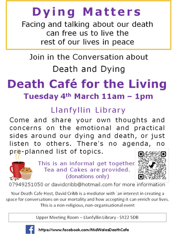 Please also see: https://www.facebook.com/MidWalesDeathCafe