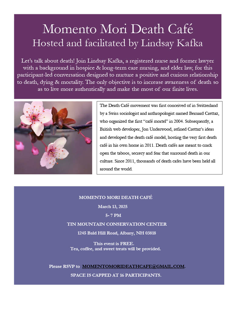 Tin Mountain Conservation Center 1245 Bald Hill Road Albany, NH 03818 03818 United States |