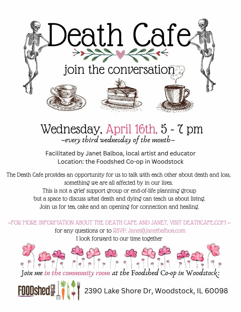 Join us for a warm, open conversation about life and death in a supportive space. We’ll begin with a brief introduction to Death Cafe, followed by free-flowing discussion. Bring your stories, reflections, or curiosity as we explore how death shapes the way we live.