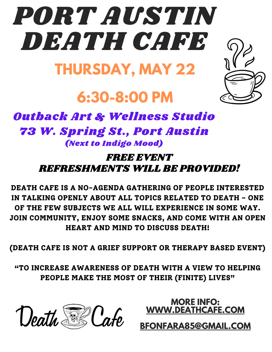 This will be the second Death Cafe hosted by Bex at the Outback Studio.