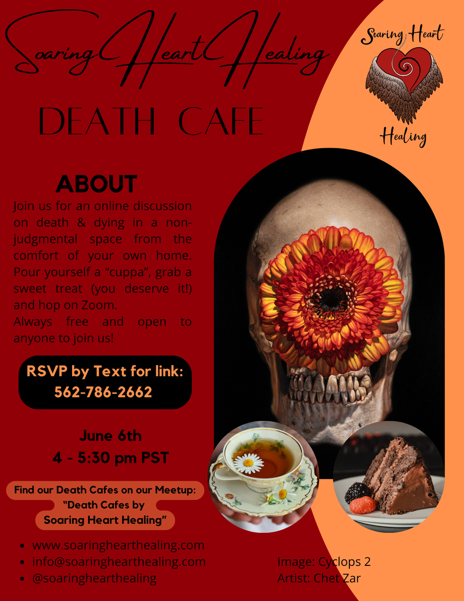 This group is created as a safe virtual space to have some tea, cake and snacks while casually discussing death without an agenda. It is NOT meant for use as a support group or for solicitation.