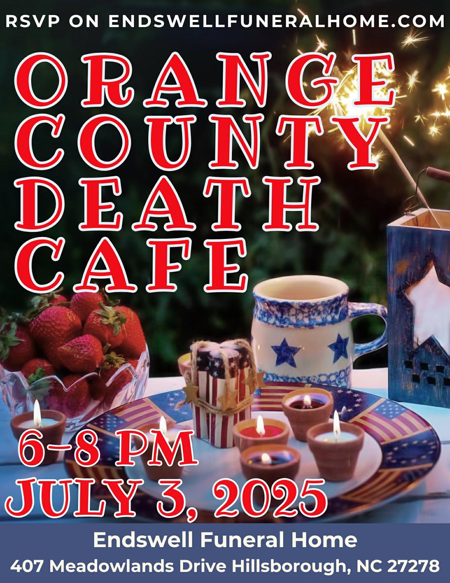 Join us at Endswell Funeral Home on Jul 3, 2025 from 6-8PM for a potluck and open discussion with the community about death and dying.
