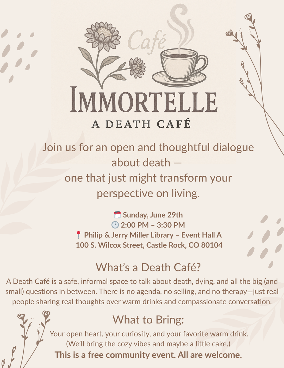 Philip & Jerry Miller Library 100 S Wilcox St, Castle Rock, CO 80104 Event Hall A 80104 United States |