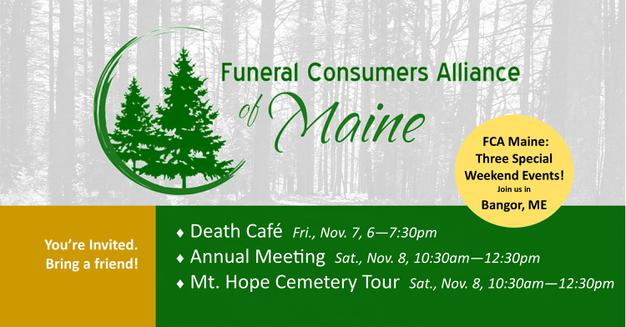 As part of our annual meeting weekend, the Funeral Consumers Alliance of Maine will host a Death Café event at the Wabanaki Public Health & Wellness facility in Bangor, ME. The event is free and open to the public.