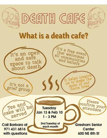 Barbara & Diana have hosted the Gresham Death Cafe with tenderness since early 2025. We look forward to guests who come for their first visit, or their 10th visit, all are welcome.