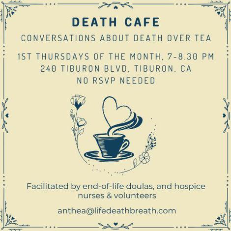 Lightly facilitated by Bay Area Death Doulas, our Death Cafe is a community based participant-directed discussion about death. Our event is welcome to all - with tea and cookies!