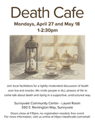 Join local End-of-Life doulas Ka Yun and Annie in the Program Room at the Sunnyvale Public Library for a discussion of death over tea and snacks.
