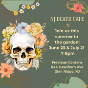 NJ Death Cafe is facilitated by a trio of death curious folks. We are a meditation teacher, an educator, and a death doula. We are based in Essex County, NJ and will be having a floating death cafe at different locations in our area. We all believe deeply in community connection and the power of diverse voices in the conversation.