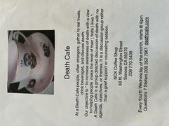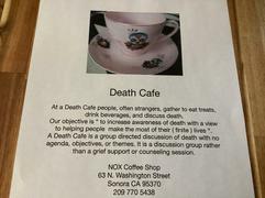 I AM EXCITED TO OFFER DEATH CAFES IN TUOLUMNE COUNTY TO ALLOW A SAFE AND CONFIDENTIAL SPACE TO CHAT ABOUT DEATH, WHICH TOUCHES US ALL. AND HAVE DRINKS AND SNACKS !