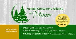 As part of our annual meeting weekend, the Funeral Consumers Alliance of Maine will host a Death Café event at the Wabanaki Public Health & Wellness facility in Bangor, ME. The ...