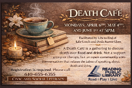 The Reading Public library is a wonderful source for knowledge. We are grateful that they support and engage local cultural events. A Death Café is not a support group or ...