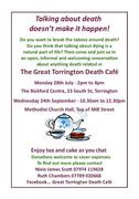 Talking about death won't make it happen! We are excited to be offering a safe place for people to come together over tea and cake to discuss death and ...