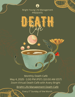 You're invited to join Avery Bright for a heart-centered virtual Death Café—an open and inclusive space to gather in community and talk about death, dying, grief, and everything in between. These events are offered as part of my death care and advocacy work through Bright Young Life Management.