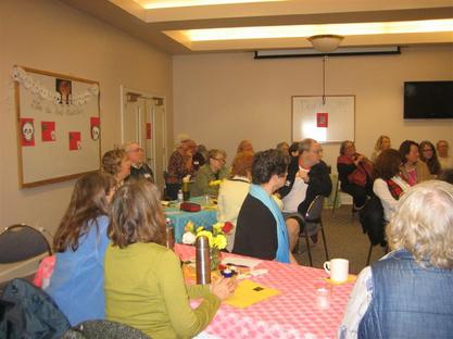 Over thrity people gathered around tables of six or so and shared with one another about their experience of and around death. Everyone wanted to "meet" the rest of the folks in the room (not just those at their table), so we took time for everyone to share a brief introduction. It gave all of us a better feeling of connection as an entire group.
